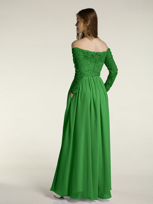 Babaroni PearlPearl Largos Vestidos De Dama De Honor Con Mangas De La Tapa Verde