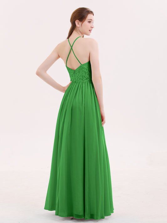 Babaroni LucilleVestidos largos de chiffon con encaje en escote en V profundo y espalda descubierta Verde
