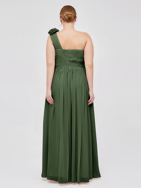 Babaroni MirabelleMirabelle Un Hombro Gasa Vestido Con Tirante Flores Verde Oliva