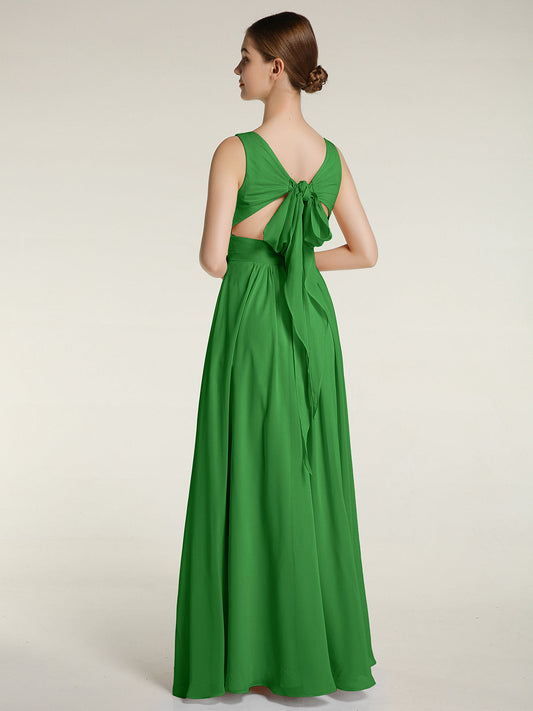 Babaroni JaneVestidos largos de chiffon estilo halter con lazo Verde