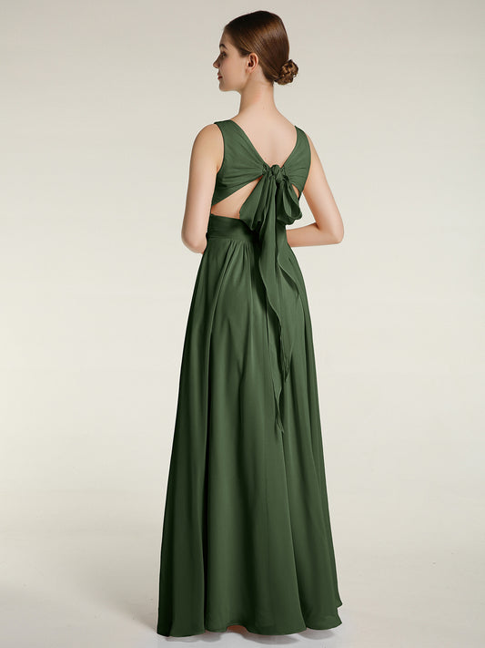 Babaroni MaudSencillos vestidos largos de chiffon con tirantes finos y abertura Verde Oliva