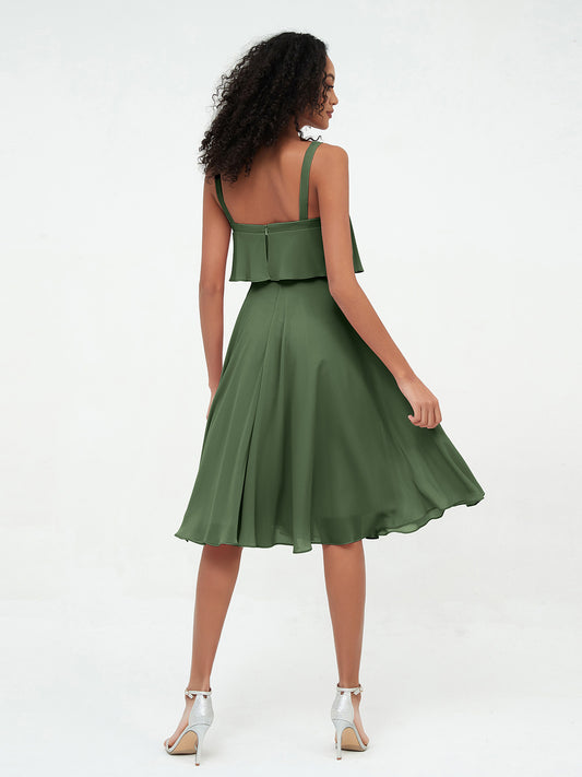 Babaroni AnnaVestidos cortos de chiffon con tirantes para la dama de honor con falda redonda Verde Oliva