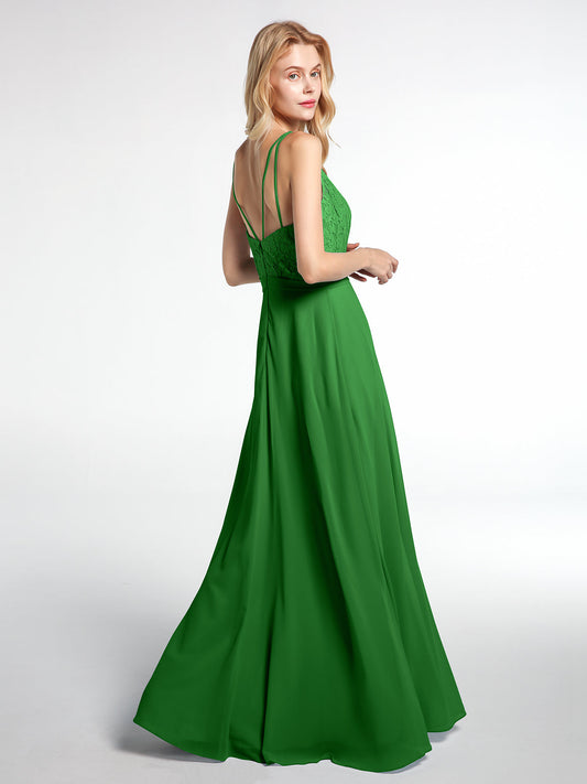Babaroni LaraineVestido maxi con cuerpo de encaje y falda de chiffon con escote en V Verde