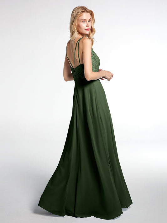 Babaroni LaraineVestido maxi con cuerpo de encaje y falda de chiffon con escote en V Verde Oliva