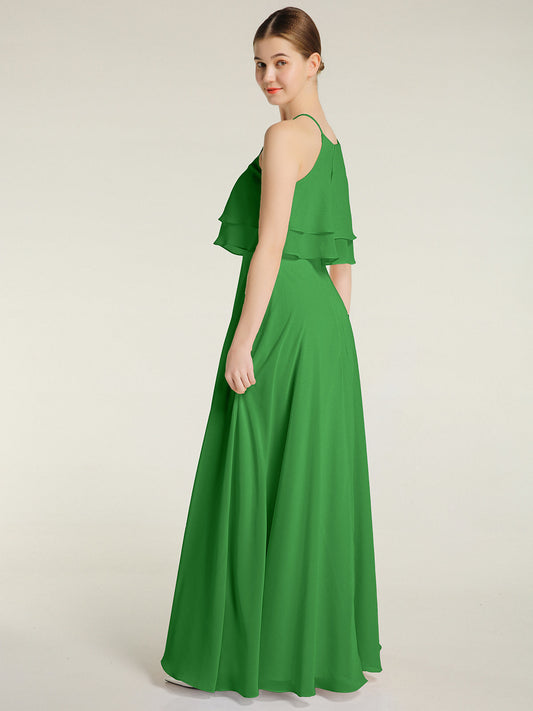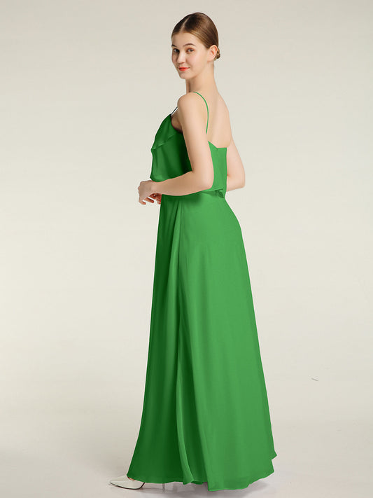 Fanny Cabestro Largo Gasa Vestido De Dama De Honor Verde