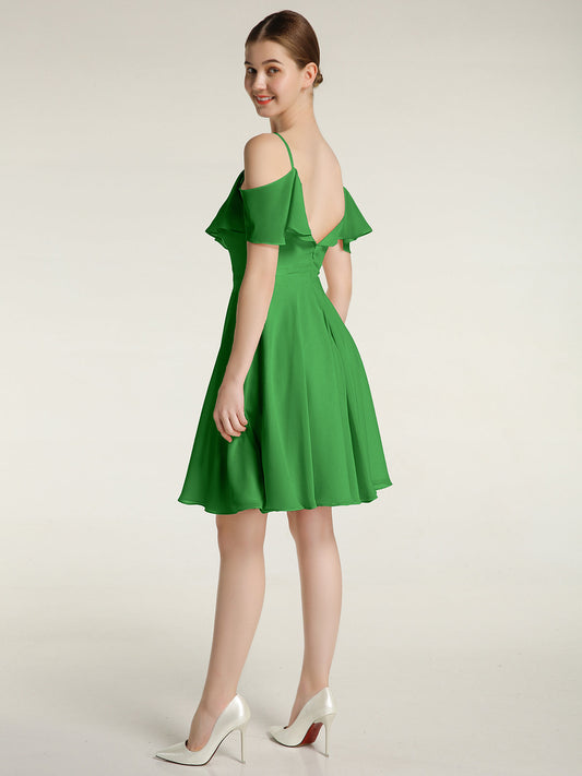 Eden Un Volante Hombro Largo Vestido De Dama De Honor Verde