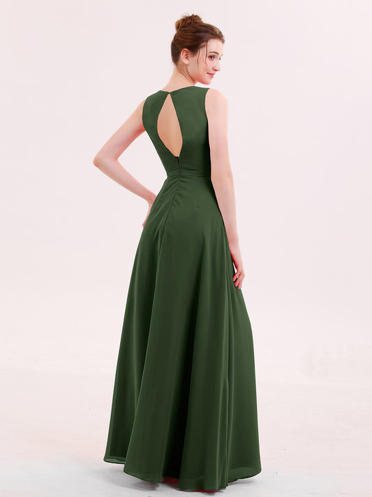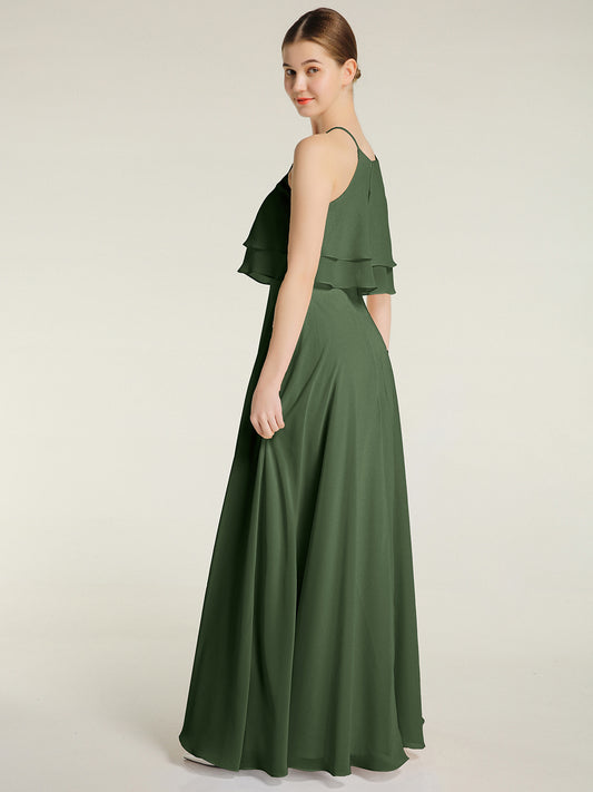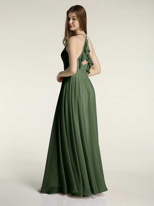 Babaroni AmyVestidos largos de dama de honor de chiffon con tirantes de cuello halter Verde Oliva