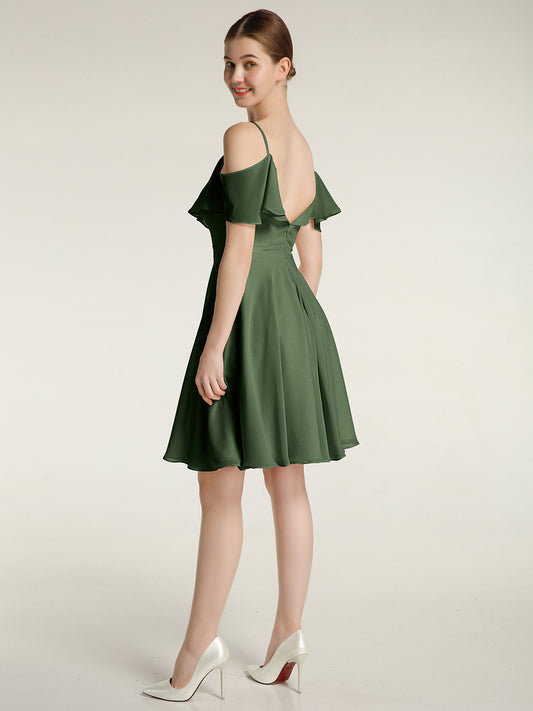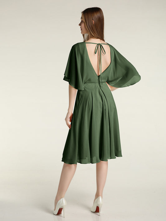 Babaroni SelenaVestidos cortos de chiffon con escote tipo scoop y mangas de volantes Verde Oliva
