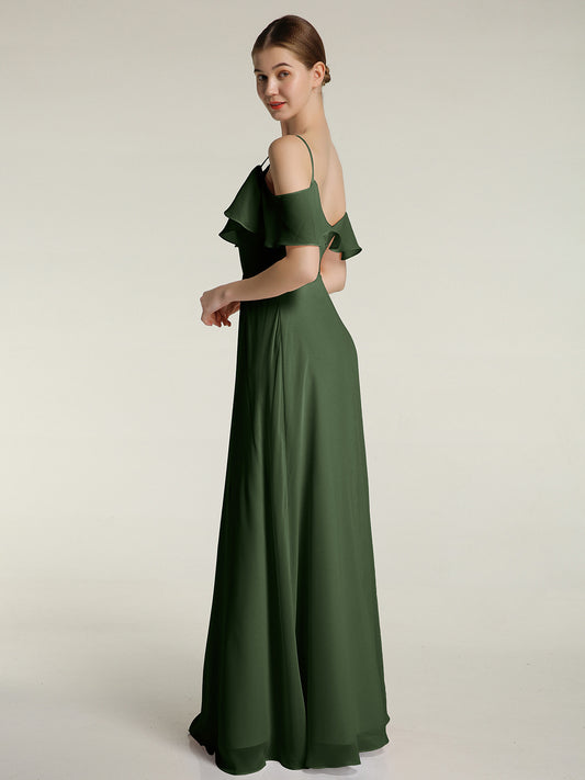 Babaroni JuliaVestidos largos de chiffon con tirantes finos y escote en V Verde Oliva
