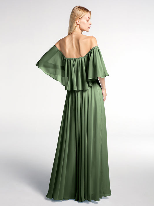 Babaroni RoseVestido maxi de chiffon con hombros descubiertos y volantes Verde Oliva