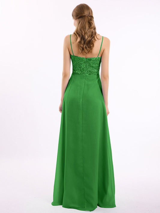 Babaroni CherryVestidos largos de encaje y chiffon con tirantes finos Verde