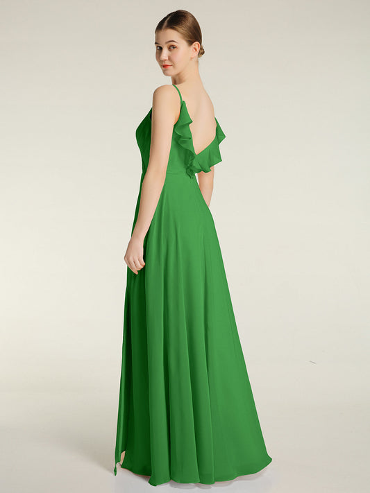 Babaroni VitaVestido de dama de honor de chiffon con escote en V y espalda descubierta Verde