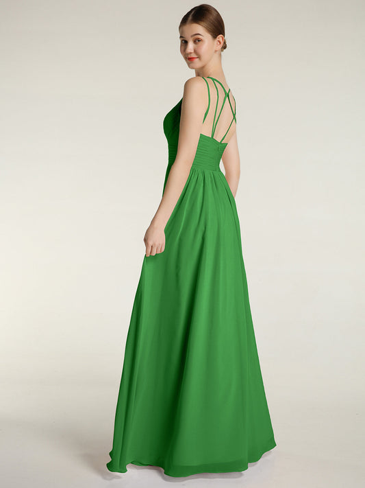 Babaroni FeliciaVestidos largos de chiffon con tirantes finos y escote en corazón Verde