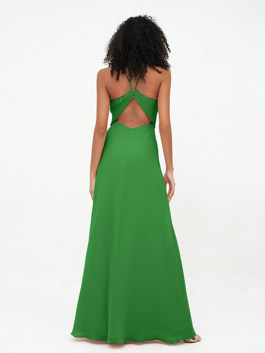 Vestidos de halter con top de encaje y espalda descubierta de gasa Verde