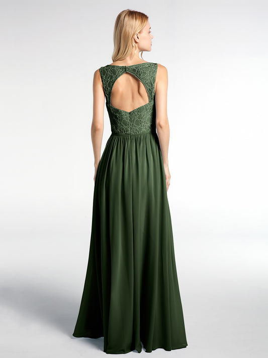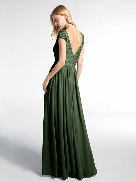 • Vestido maxi de chiffon con escote en V y parte superior de encaje Verde Oliva