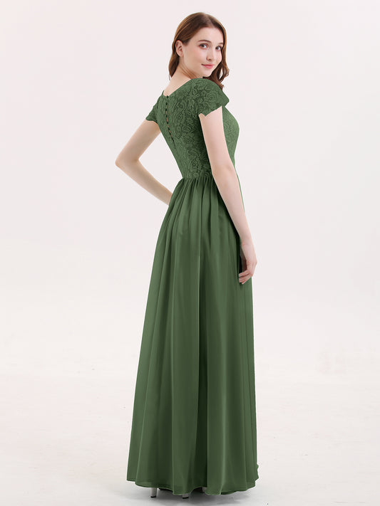 Pearl Largos Vestidos De Dama De Honor Con Mangas De La Tapa Verde Oliva
