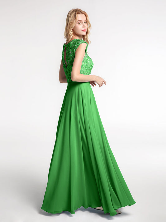 Vestido de encaje en el cuerpo y falda de chiffon con mangas cortas Verde