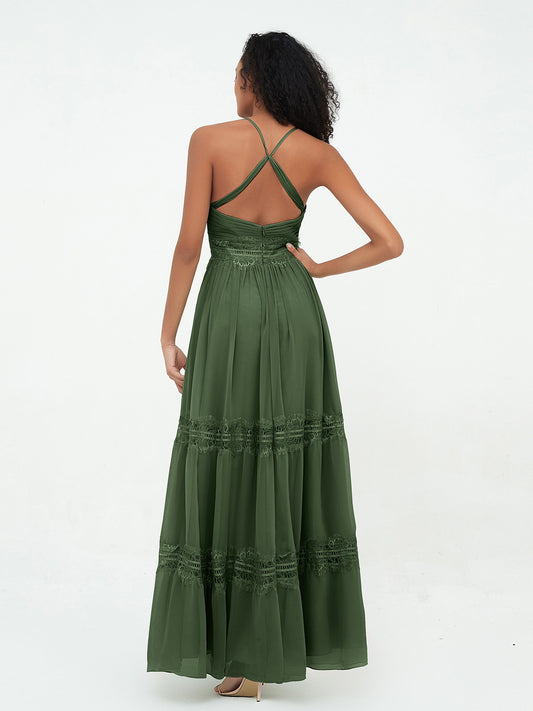 Babaroni RyleeVestidos boho con falda de encaje y chiffon en capas Verde Oliva