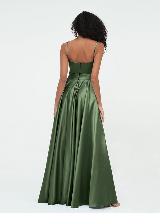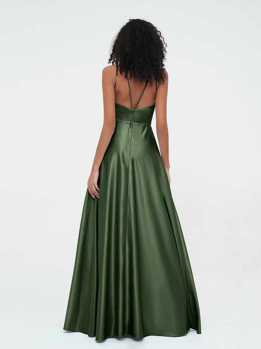 Babaroni MyrnaVestidos máximos de satén estilo A-line con tirantes spaghetti Verde Oliva