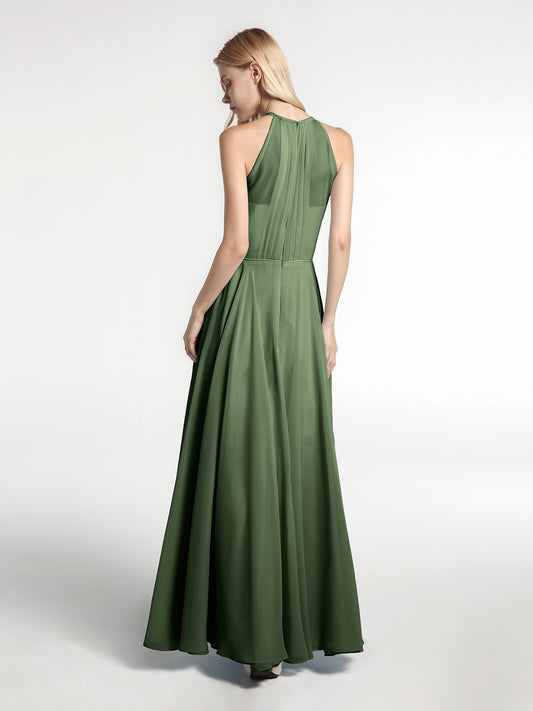 Babaroni AmyVestidos largos de dama de honor de chiffon con tirantes de cuello halter Verde Oliva