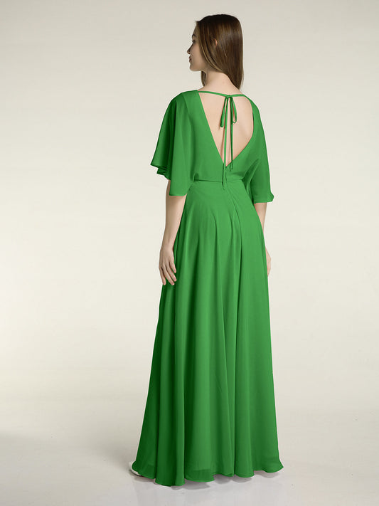 Babaroni CelinaCelina Escote En V Gasa Vestido De Dama De Honor Hasta El Topillo Verde