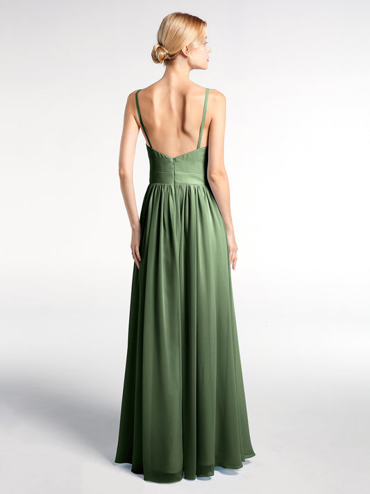 Babaroni HedyVestido largo de chiffon con escote en forma de V y cintura imperio Verde Oliva