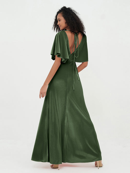 Babaroni BblytheVestidos largos de terciopelo de corte recto con mangas de volantes Verde Oliva