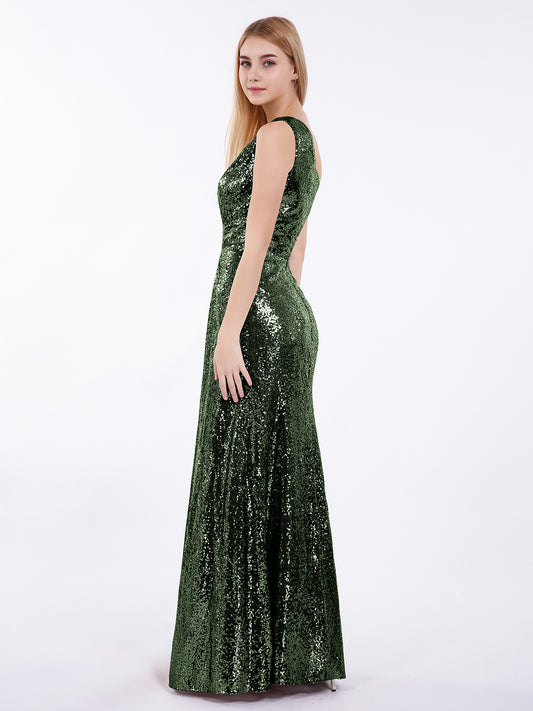 Babaroni ClaireClaire Un Hombro Largo Lentejuelas Corte Verde Oliva