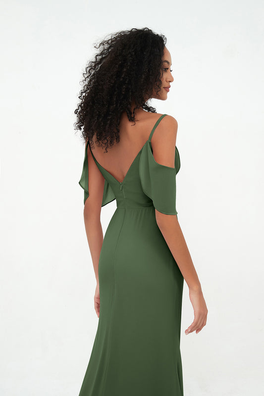 Babaroni BridgetVestidos largos de terciopelo con hombros descubiertos y mangas largas Verde Oliva