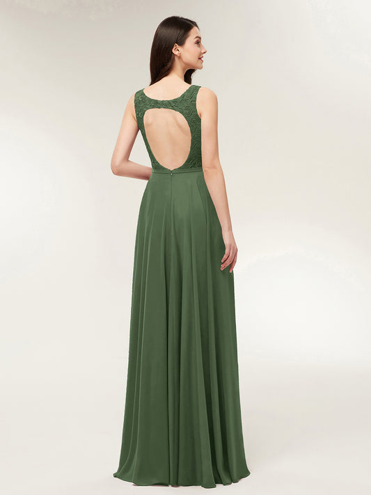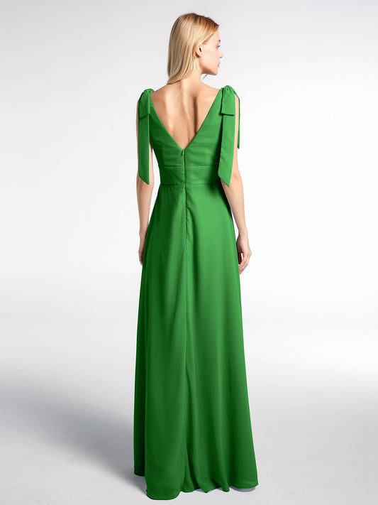 Babaroni VitaVestido de dama de honor de chiffon con escote en V y espalda descubierta Verde