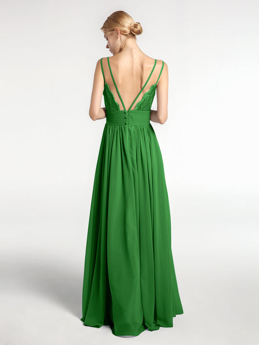 Babaroni CoraVestido largo de dama de honor de chiffon con tirantes dobles Verde