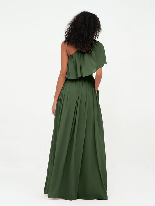 Babaroni MildredVestidos largos de chiffon de un hombro con bolsillos Verde Oliva