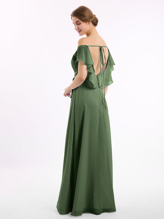 Babaroni NicoleVestidos largos de dama de honor de chiffon sin tirantes Verde Oliva