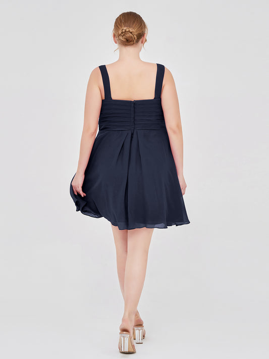 Babaroni PenelopePenelope Escote En V Gasa Corto Vestido De Dama De Honor Azul Marino