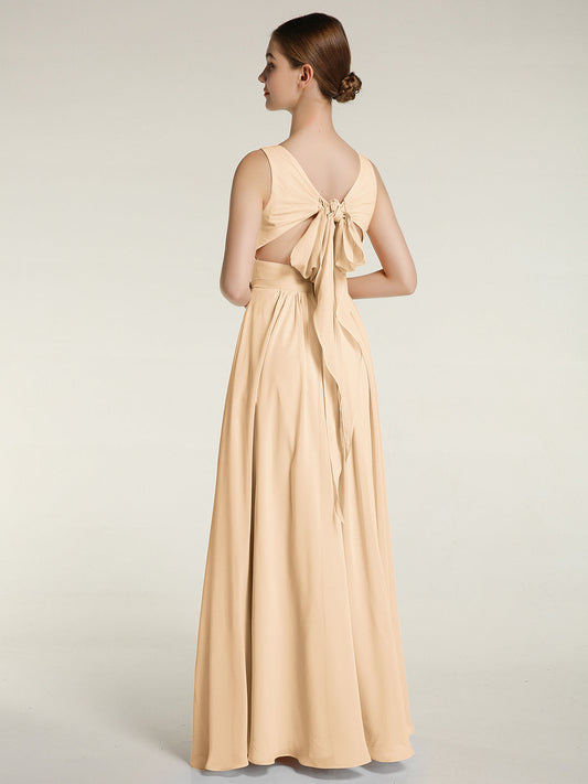Babaroni JaneVestidos largos de chiffon estilo halter con lazo Melocotón