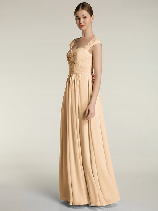 Babaroni HelenVestidos de chiffon con escote en corazón y mangas cap de encaje Melocotón