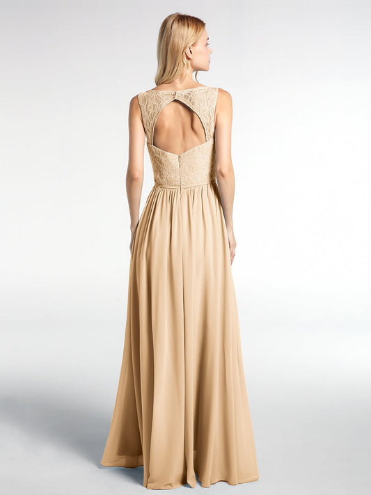 Babaroni KittyVestidos largos de chiffon con cuerpo de encaje marfil Melocotón
