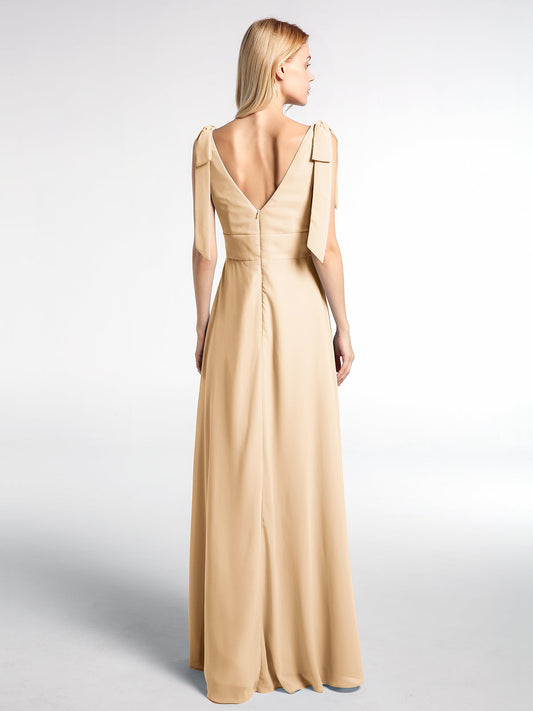 Babaroni JuliaVestidos largos de chiffon con tirantes finos y escote en V Melocotón