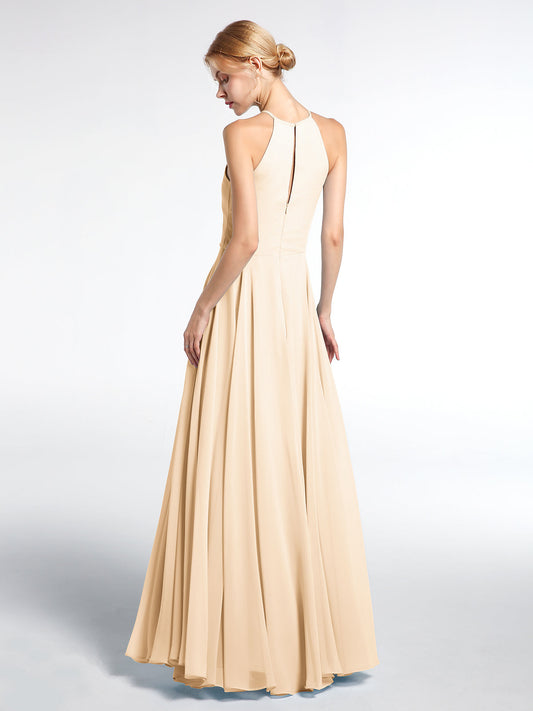 Babaroni TheraVestidos largos de dama de honor estilo halter de chiffon con espalda baja Melocotón