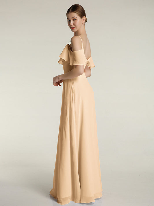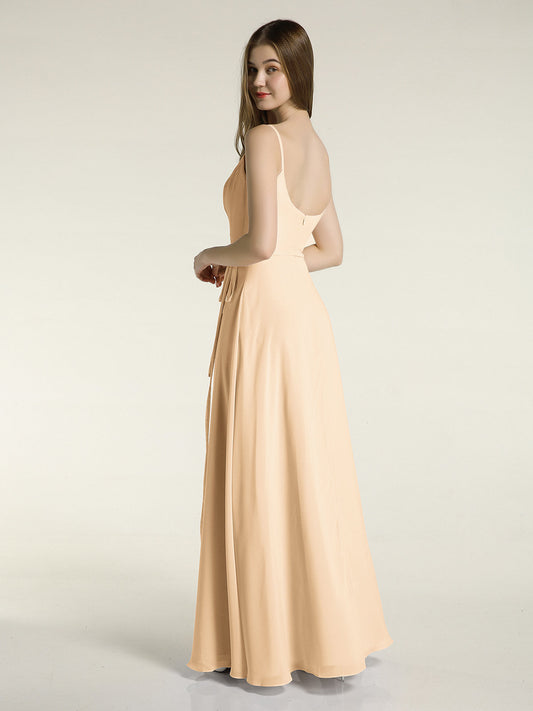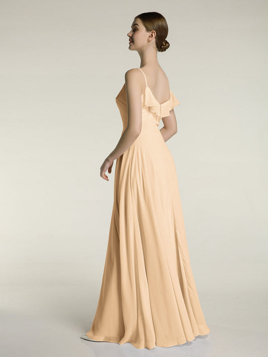 Babaroni MaudSencillos vestidos largos de chiffon con tirantes finos y abertura Melocotón