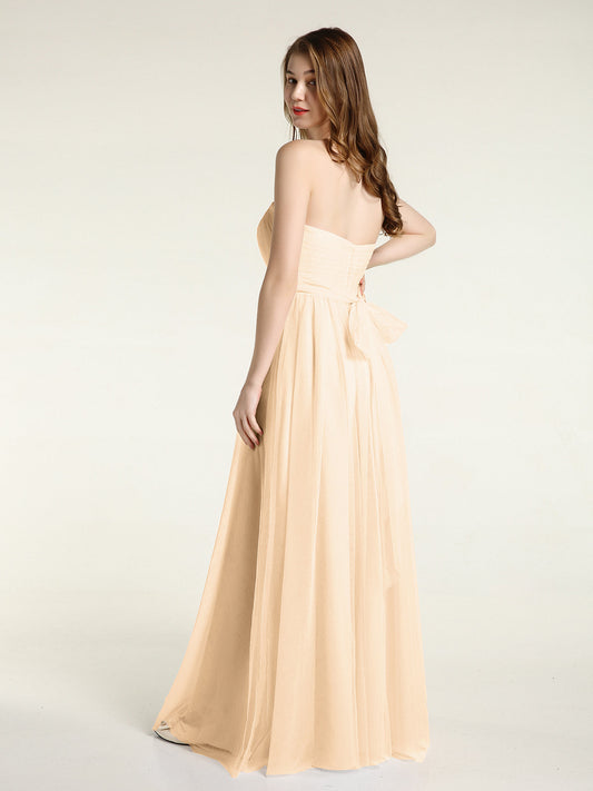 Babaroni ViolaVestidos largos de dama de honor sin tirantes con escote en corazón y falda de tul Melocotón