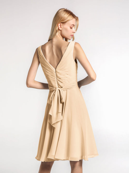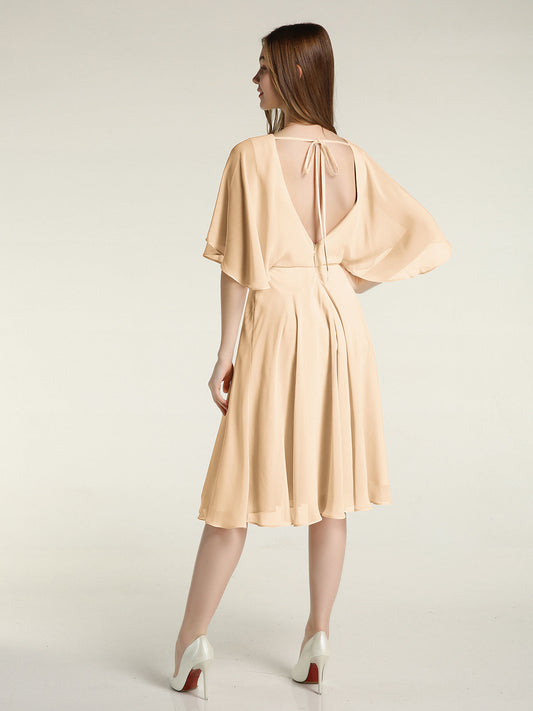Babaroni MichelleVestido de chiffon con escote en V y tiras traseras decorativas Melocotón