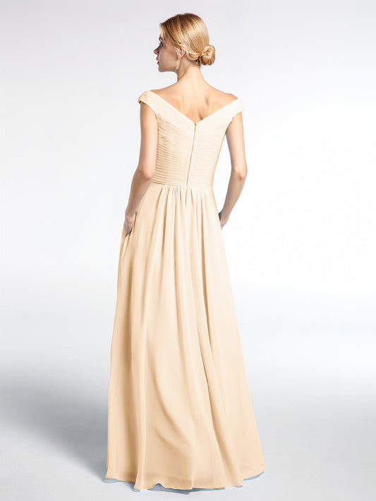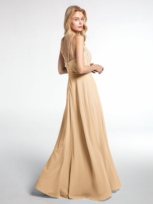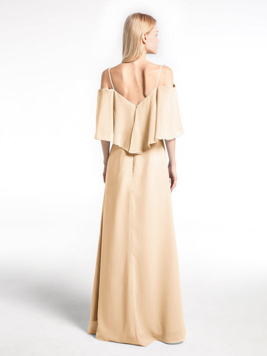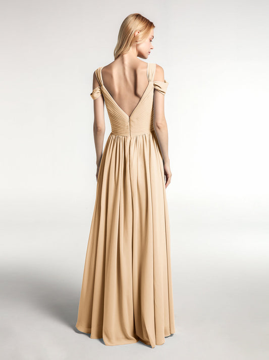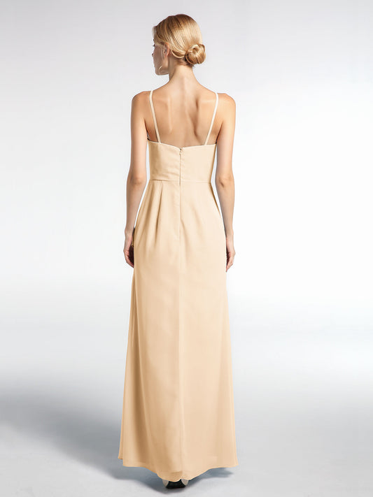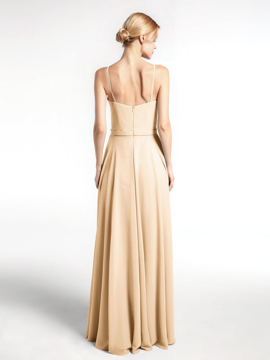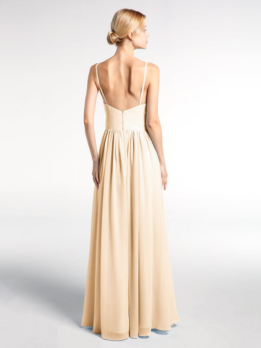 Babaroni NatalieVestido maxi simple de chiffon con escote en V y tirantes finos Melocotón