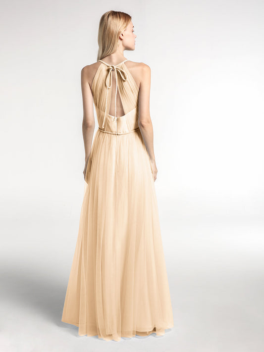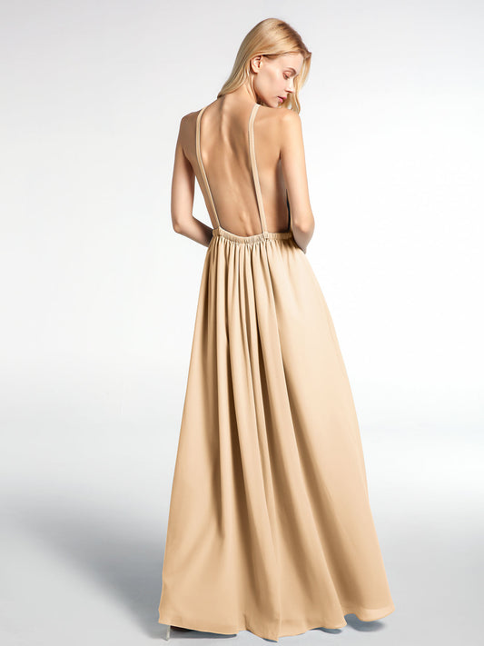 Babaroni ReneeVestido sexy maxi de chiffon con cuello halter y espalda baja Melocotón