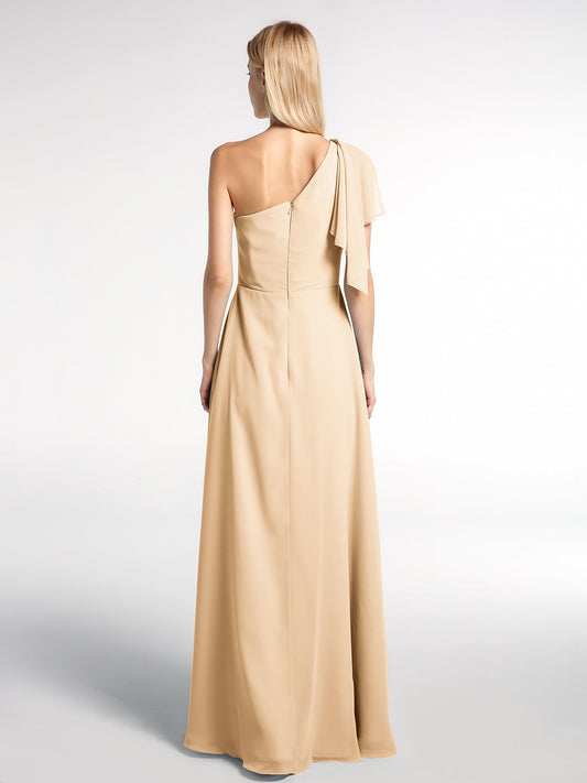 Babaroni SalomeVestido maxi de chiffon de un solo hombro con detalle en cascada Melocotón