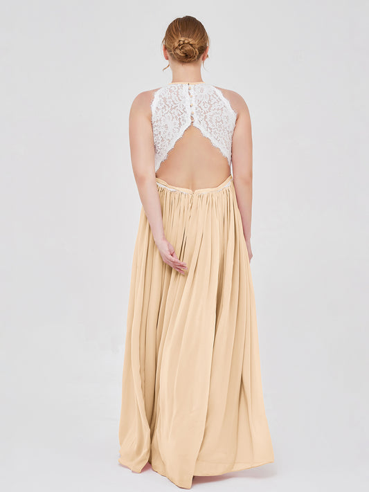 Babaroni PandoraPandora Encaje Y Gasa Cabestro Vestido Con Espalda Abierta Melocotón