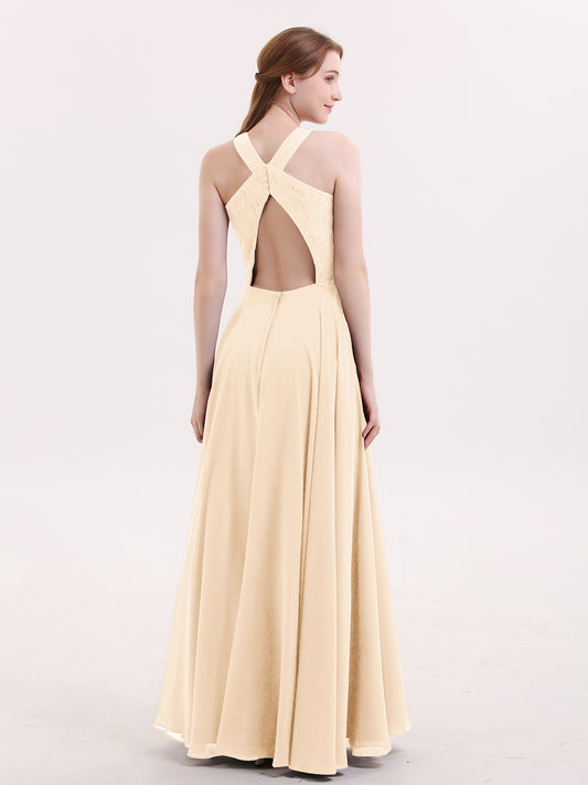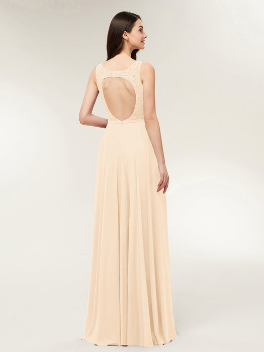Babaroni LeonaLeona Tirante Espagueti Gasa Vestido De Dama De Honor Melocotón