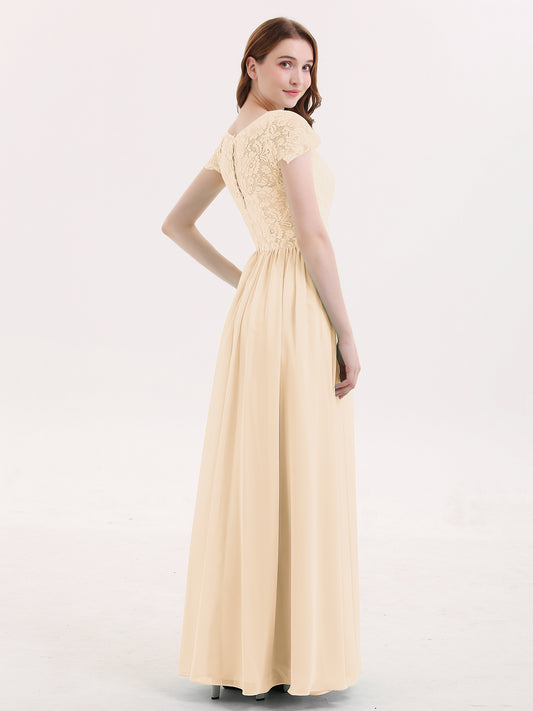 Babaroni PearlPearl Largos Vestidos De Dama De Honor Con Mangas De La Tapa Melocotón