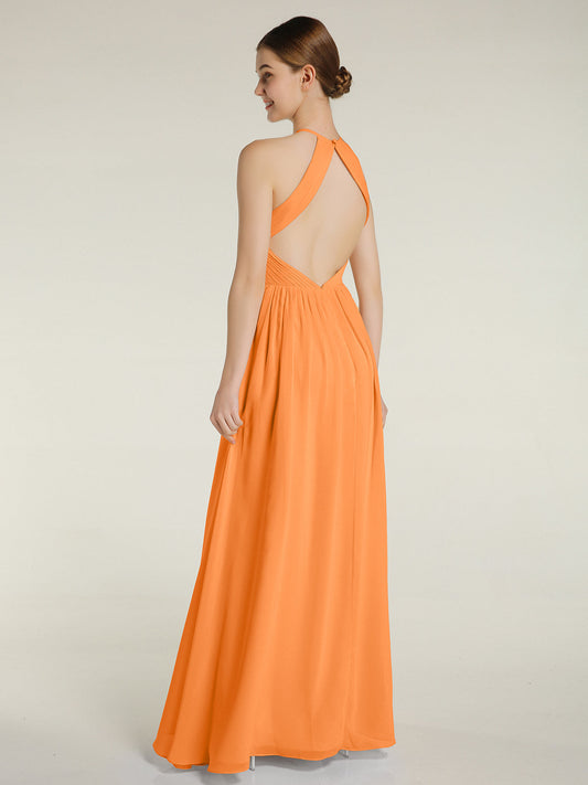 Babaroni AmandaVestidos largos de chiffon y encaje estilo halter Naranja