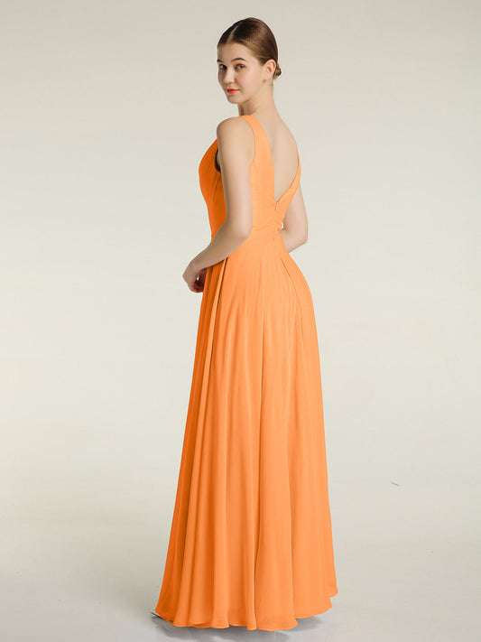 Babaroni CarolVestidos sencillos de chiffon con escote en V Naranja